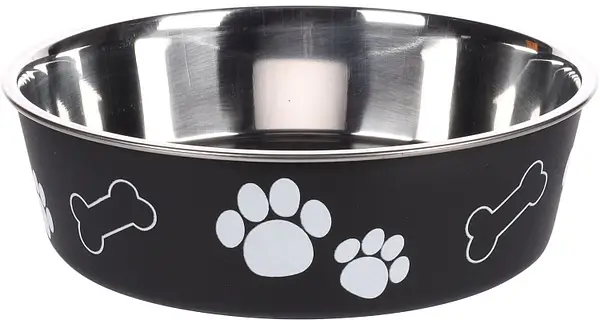 Flamingo libisemisvastase põhjaga musta värvi metallkauss koerale.