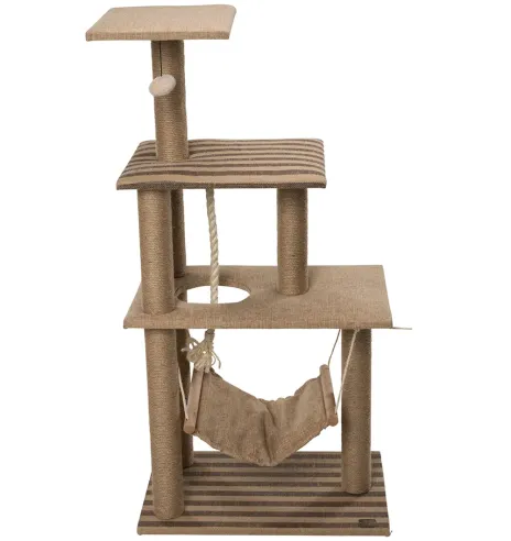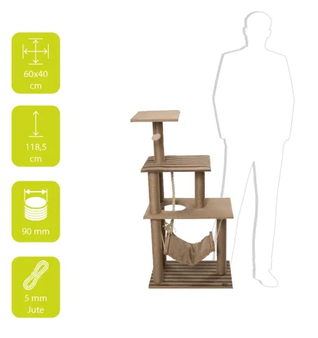 See tugev kraapimispuu on džuudiga viimistletud ja sisaldab kõiki elemente, mis on kassile olulised. Kass saab posti kraapida, lisaks on võrkkiik suurepärane koht puhkamiseks. Ülal asuvad kaks mängupalli pakuvad kassile lõbusat tegevust.