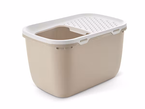 Ideaalne lahendus, kui kass armastab peale kraapida nii, et liiv lendab. Tänu kaanele jääb liiv kasti ja kass saab turvaliselt n.ö. peidus oma asjatoimetusi teha. Kaanel peal augud, mida kaudu käppade külge jäänud liiv pudiseb tagasi kasti. Kasti sisenemine toimub pealt poolt.