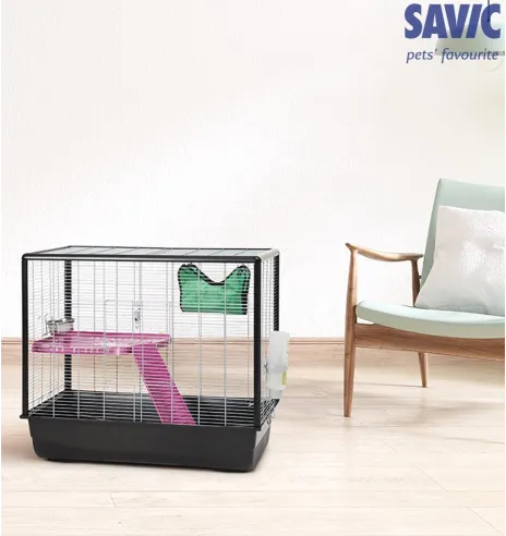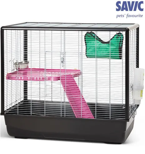 Väga kitsas võrevahe (9,5 mm) muudab puuri sobivaks nii rottidele kui ka hamstritele. Tähelepanu köidab roosa trepiga platvorm. Koheva musta plüüsiga ääristatud roheline võrkkiik pakub lemmikloomale võimaluse lõõgastumiseks.